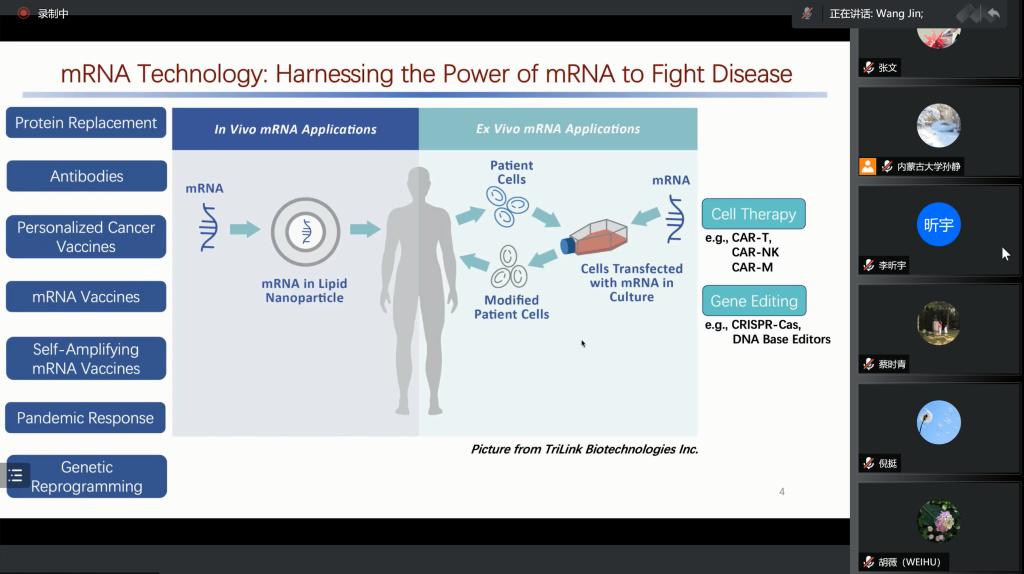 王进,太阳集团tyc539研究员,博士生导师,生物分析化学与化学生物学实验室负责人,兼任省部共建草原家畜生殖调控与繁育国家重点实验室研究员,主要研究方向包括核酸化学生物学、核酸化学修饰、质谱分析、生物分析化学,已在Nucleic Acids Research、Journal of Clinical Investigation、Nature 等国际学术期刊上发表多篇论文。王进研究员围绕‘mRNA加帽的生物学功能和应用’进行了有关mRNA的基础知识、最新进展及其近期研究工作(Wang. J. et al. Nucleic Acids Res 2019:e130.)的介绍。另外,他阐述了近年来自己所研发的mRNA加帽技术‘CapQuant’方法,该方法不仅适用于定量体内或体外来源RNA,还可用于研究多种生物过程,包括RNA代谢、特定的转录问题、揭示基因表达、以及端帽结合蛋白调控基因表达等。