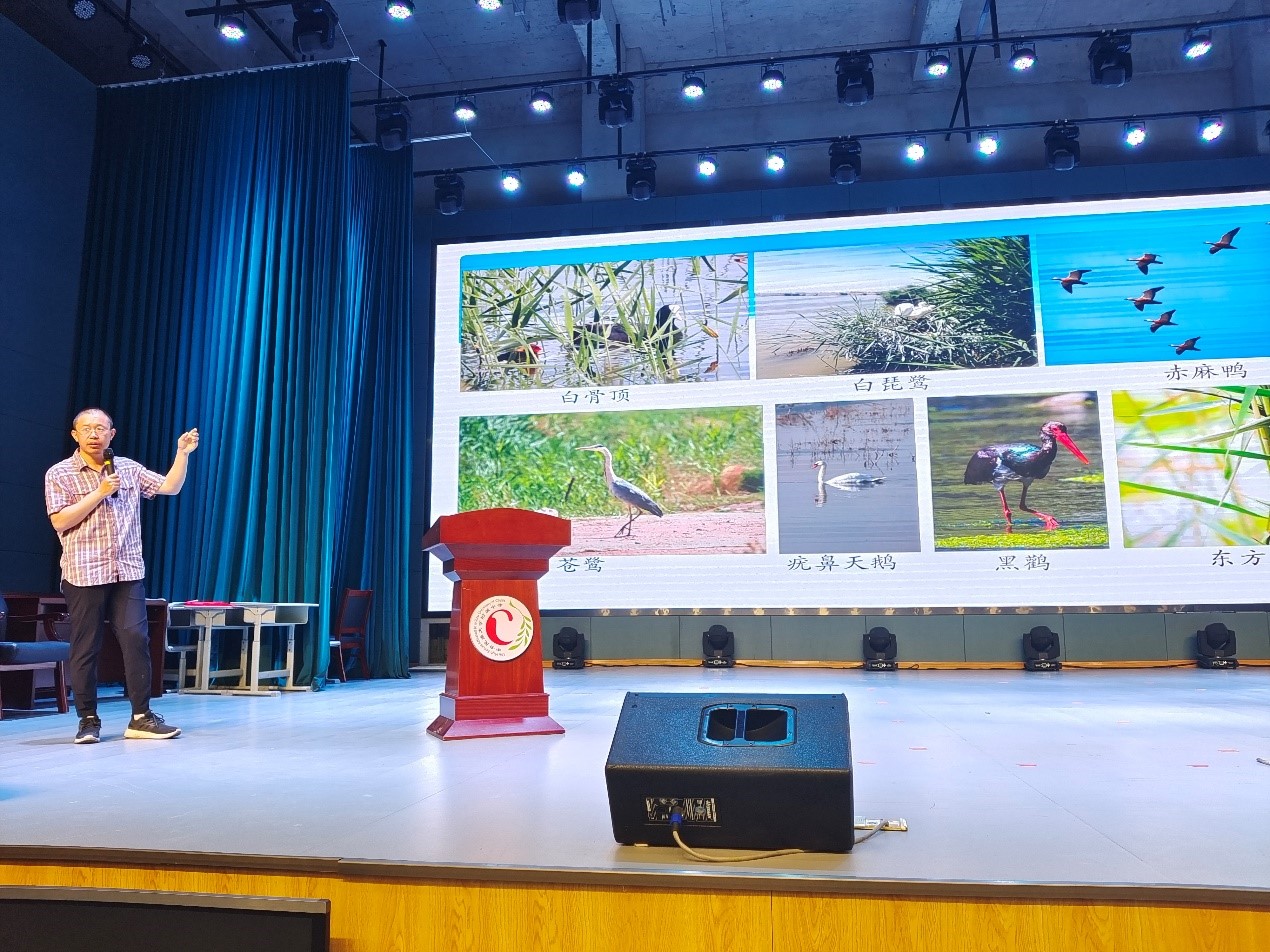 梁斌副教授以野外工作中拍摄的大青山斑羚短视频开始科普讲授,带领同学们认识呼和浩特及周边草原、湿地及沙漠等不同生境中的野生鸟类、昆虫、爬行动物及哺乳动物,向同学们展示了野外鸟类观测及卫星定位的研究案例,引导同学们热爱自然增强保护野生动物资源的意识。