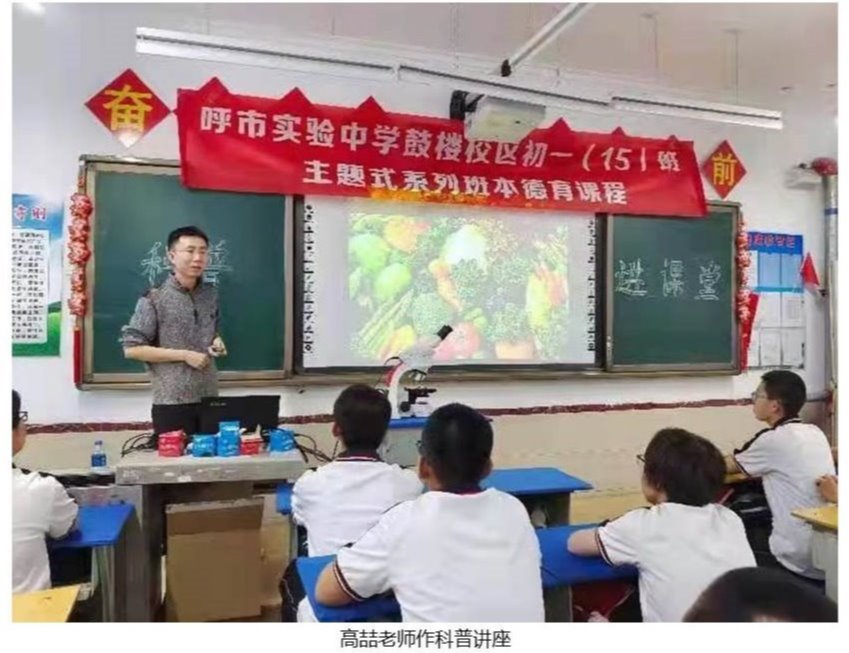 2021年5月24日,太阳集团tyc539、省部共建草原家畜生殖调控与繁育国家重点实验室、牧草与特色作物生物学教育部重点实验室联合组织教师前往呼市实验中学鼓楼校区开展科普活动。参加此次活动的有牧草与特色作物生物学教育部重点实验室教师毛惠平、高喆、王丽红,省部共建草原家畜生殖调控与繁育国家重点实验室教师梁浩,实验中学学校党委书记范广英、政教处主任孙强、初一年级生物组陈立萍和王丹老师。