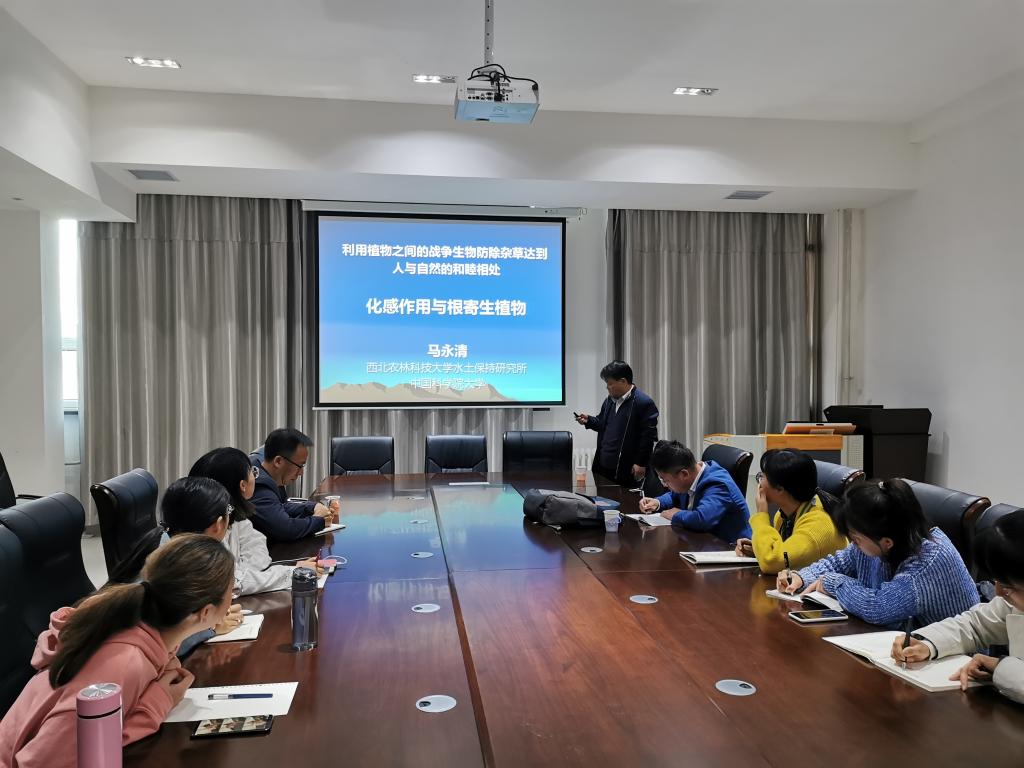 马永清教授主要从植物化感作用、根寄生植物、根寄生杂草列当及其危害、玉米用来防除杂草、农田上覆盖稻壳、向日葵列当防除的措施等内容展开讲解,通过理论与实例的结合,进一步揭示了植物化感作用的生理机制。期间讨论热烈、气氛活跃,此次报告为青年师生提供了良好的学习、交流机会。