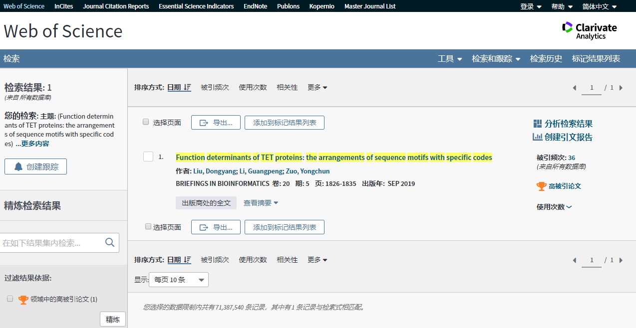 除此之外,自2016年开始课题组就已经开始了对DNA去甲基化酶TET蛋白家族进行深度的序列和结构生物信息学分析工作,探索了三个TET家族成员间的进化关系的保守性和差异性。发现三个TET家族成员TET1、TET2和TET3的催化功能域具有高度同源性,但其靶向定位模体和功能调控模体却具有显著差异性。催化功能域的保守性体现在:TET1、TET2和TET3的催化活性均依赖于Fe2+和α-酮戊二酸,Fe2+结合模体偏向组氨酸和天冬氨酸,α-酮戊二酸结合模体偏向组氨酸、丝氨酸和精氨酸。差异性集中表现在靶向定位和功能调控上,文章中新鉴定出的两个未知元件可能与TET3潜在功能有关。这种因编码序列而产生的差异性在可变剪接过程中,产生了多样的转录变体和蛋白质亚型,经过翻译后修饰,各自执行其特有功能。相关研究成果已于2019年9月正式发表在国际生物信息学权威学术期刊Briefings in Bioinformatics(2018 IF: 9.101),第一作者为我校太阳集团tyc5392014级生物科学基地本科生刘东阳,论文发表后,国际同行给予积极评价,根据最新Web of Science统计显示,该论文2020年3/4月-至今被ESI 1%高被引论文收录。
