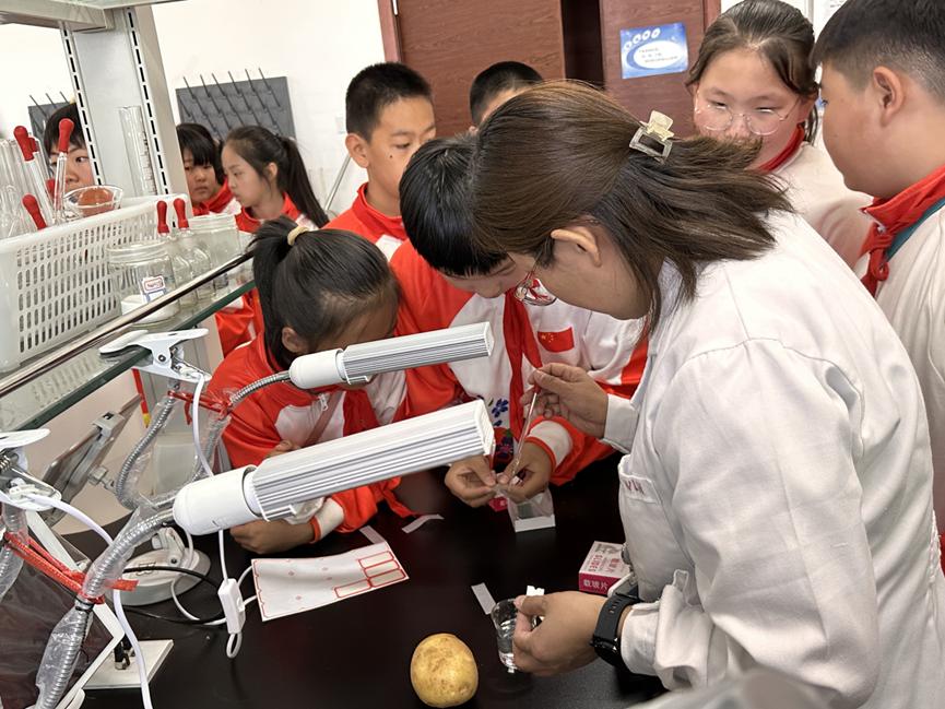 6月2日,学院邀请太阳成集团tyc539附属小学五年级的60多名师生来到学院参观实验室,在王丽红老师和孙静老师指导下进行了科学小实验。