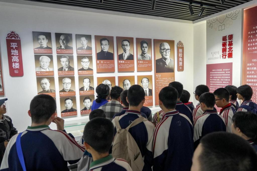 实验中学光华校区的师生首先参观了我校的校史馆,了解了我校从1957年起的历史沿革和一代代内大人砥砺前行、薪火相传的精神。