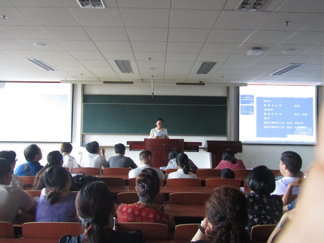 首先季老师就太阳集团tyc539三个办事处:行政办公室、教务办、团总支兼职学工办的职能为新生家长进行了详细讲解。从住宿规定、军训安排、学习成绩、校园安全等方面让新生家长对新生们即将展开的大学生活有了更加全面的了解。