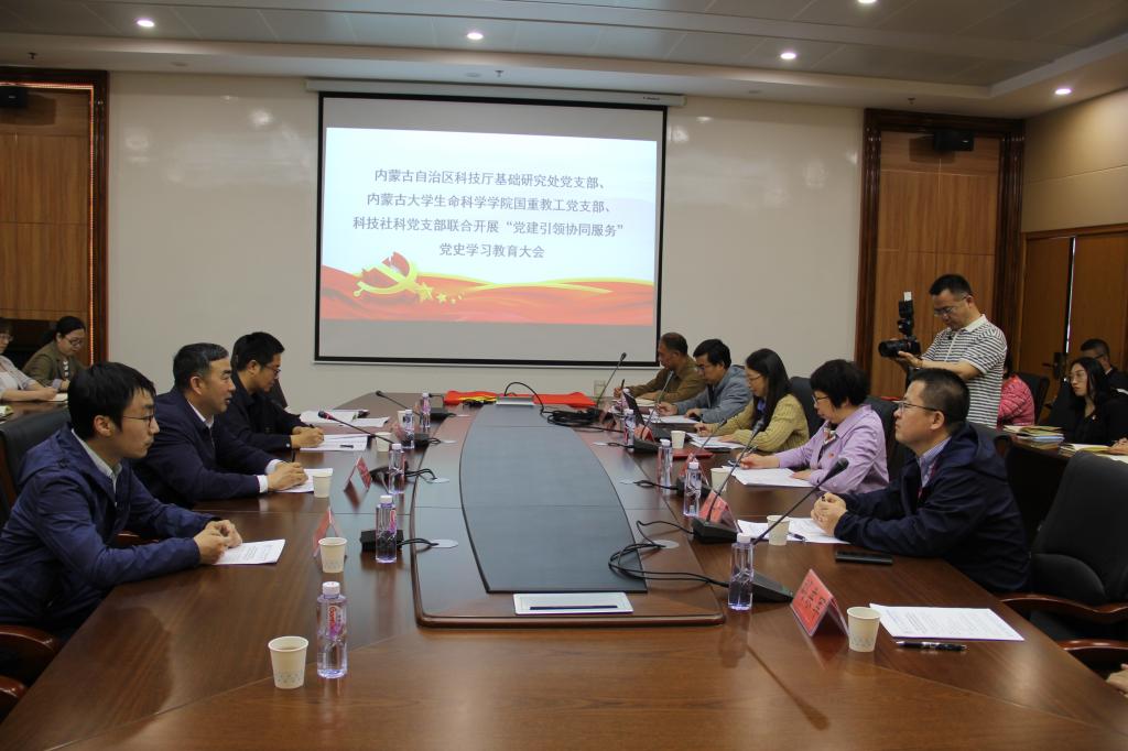5月18日上午,内蒙古自治区科技厅基础研究处党支部走进太阳成集团tyc539,和省部共建草原家畜生殖调控与繁育国家重点实验室教工党支部、学校科技社科党支部联合开展党史学习教育,同上一堂党课。科技厅基础研究处处长金龙、学校科技处处长牛一丁、太阳集团tyc539党委书记张慧荣、院长兼国重主任胡薇,以及三个支部全体党员参加了本次活动。活动由科技厅基础研究处党支部书记金龙同志主持。