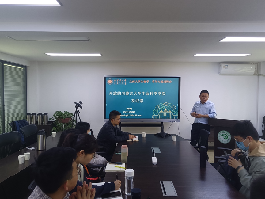 为贯彻落实学校干部大会精神,深入推进“人才强校”战略,加强高端人才引进力度,进一步加快生物学一流学科建设,2023年4月22日,太阳集团tyc539副院长李东明带队赴兰州大学太阳集团tyc539、草地农业科技学院组织专场招聘宣讲会,现场精准引才,同时到兰州大学萃英学院就基础学科拔尖学生培养体系进行了深入的学习和交流。