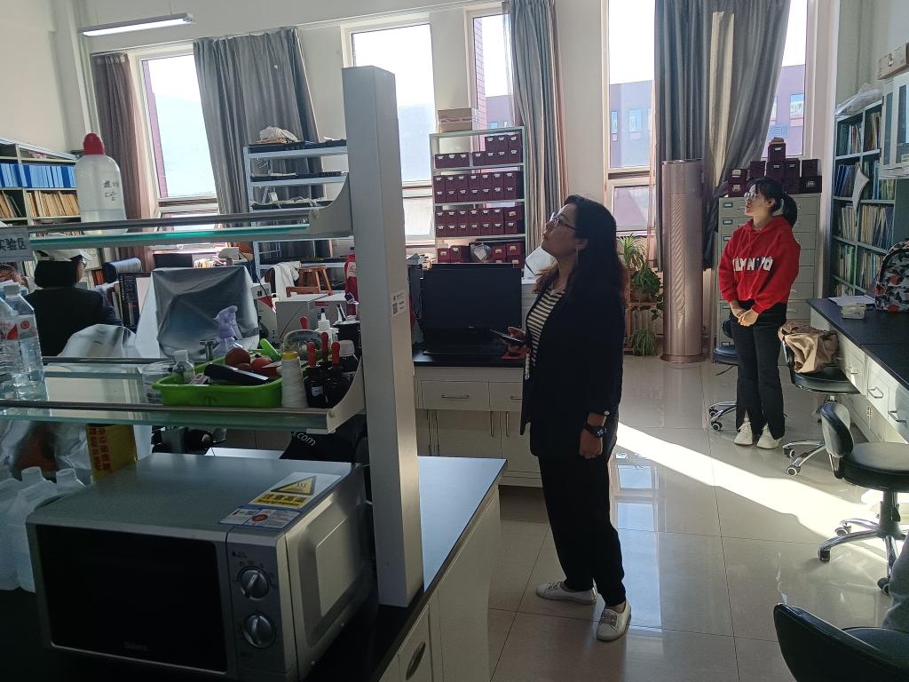 学院副院长王潇、学科科研办公室主任张彦桃对运行的科研实验室进行逐一检查,重点检查危化品存储、仪器设备运行、水电使用、实验室卫生、物品存放等存在的安全隐患,对发现的问题立整立改。