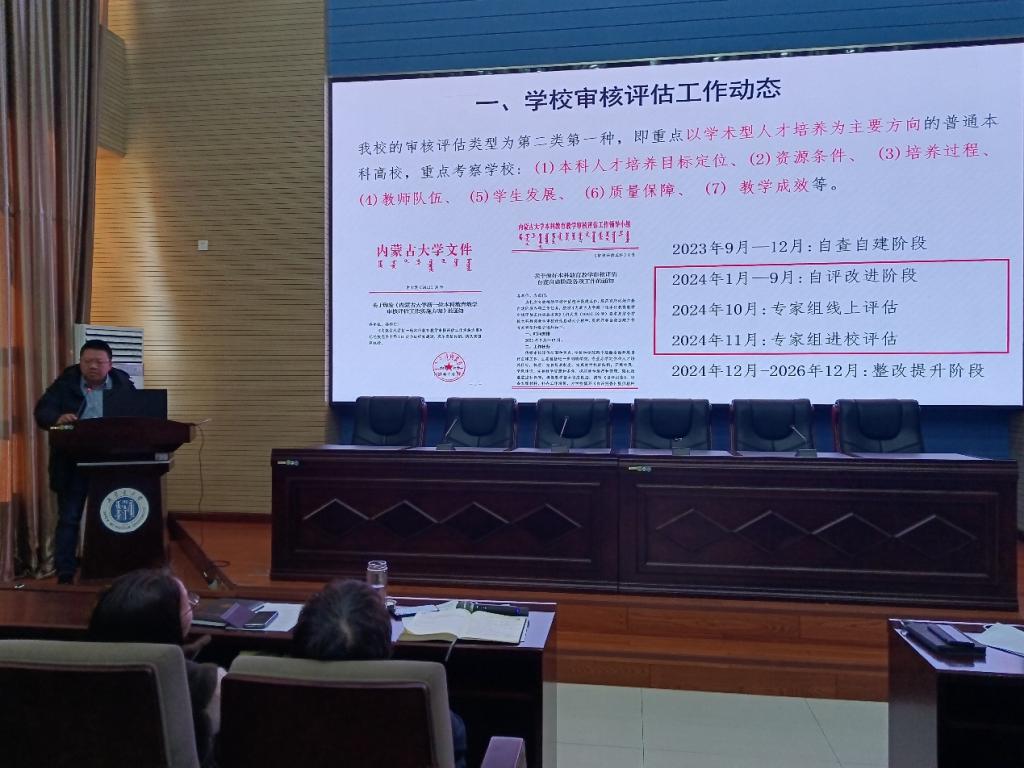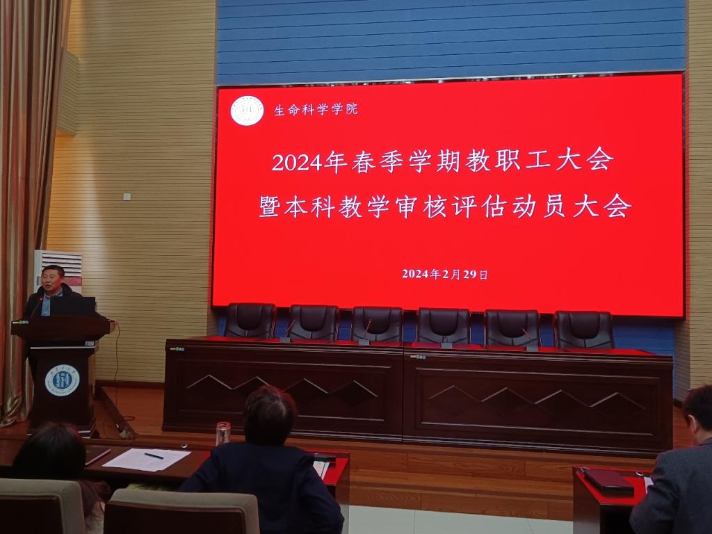 李东明副院长就2024年本科教学审核评估工作做了动员,详细介绍其意义和重要性,并就目前的工作进展做了汇报,同时介绍了学校和学院有关支持本科教学的政策以及2023年本科教学绩效的分配原则。