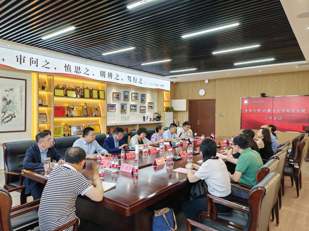 2024年5月22日吉林大学院长于湘晖教授一行来学院开展部省合建调研交流。首先双方进行了座谈,座谈会由我院院长胡薇教授主持,党委书记张慧荣、在家副院长及教师代表参加会议。