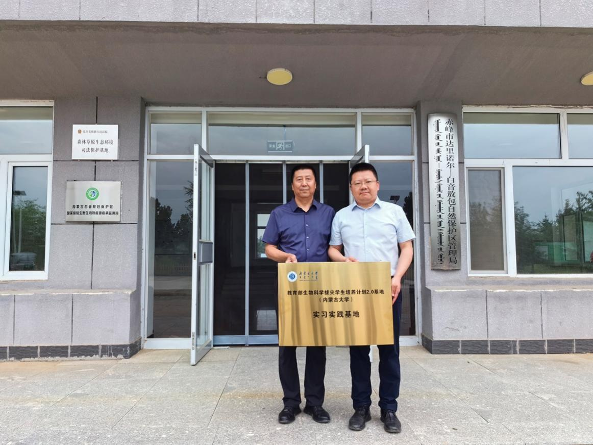 为落实《教育部关于加快建设高水平本科教育全面提高人才培养能力的意见》和《教育部等六部门关于实施基础学科拔尖学生培养计划2.0的意见》等文件要求, 提升教育部生物科学拔尖计划2.0基地学生的实践能力和科研素养,激发学习兴趣,在生物科学专业野外综合实习期间,学院与锡林郭勒草原国家级自然保护区管理局、达里诺尔国家级自然保护区管理局和白音敖包国家级自然保护区管理局签署了实习实践基地协议,并举行了揭牌仪式。太阳集团tyc539副院长李东明、生物化学与生理学系系主任赵东平及实习带队教师,锡林郭勒草原国家级自然保护区管理局、达里诺尔国家级自然保护区管理局和白音敖包国家级自然保护区管理局相关负责人出席了签约仪式。