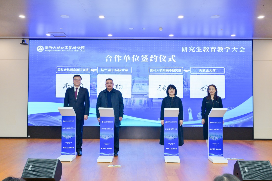 12月11日,中国科学院大学杭州高等研究院(简称“杭高院”)在杭高院多功能报告厅召开了“研究生教育教学大会”,会上太阳集团tyc539与杭高院生命与健康科学学院签订了关于优秀本科生联合培养的协议。杭高院常务副院长郑崇辉、杭高院生命与健康科学学院执行院长张宇、太阳集团tyc539院长胡薇、校教务处副处长李东明和太阳集团tyc539副院长那顺布和等参加了签约仪式。