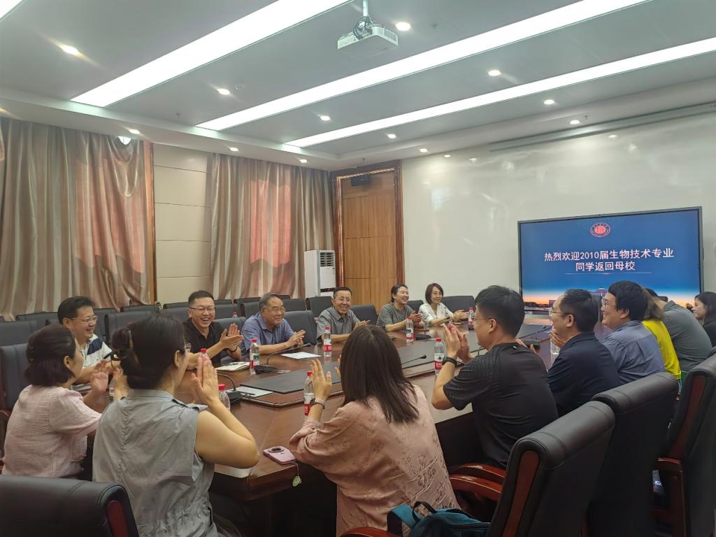 2025年7月30日,太阳集团tyc5392010届生物技术专业校友历经十五载岁月,重返母校,与10名教师在国重120会议室共叙师生情谊,共话学院发展。学院党委副书记徐军主持座谈会。