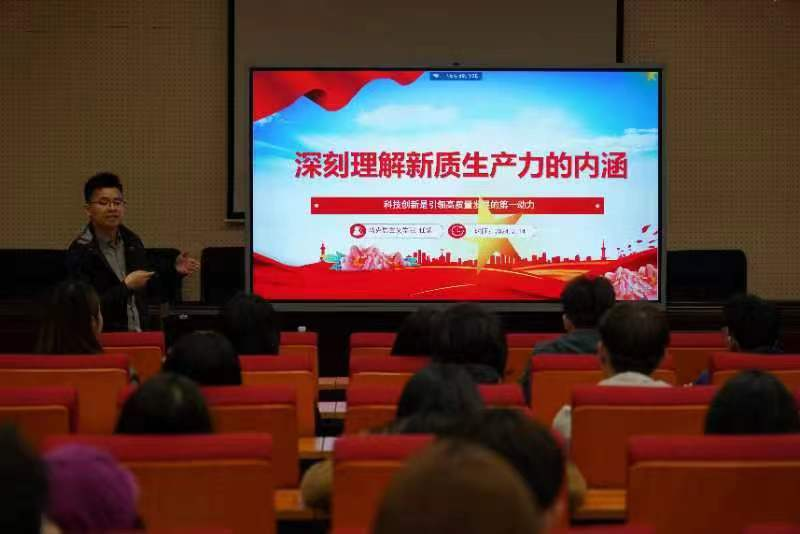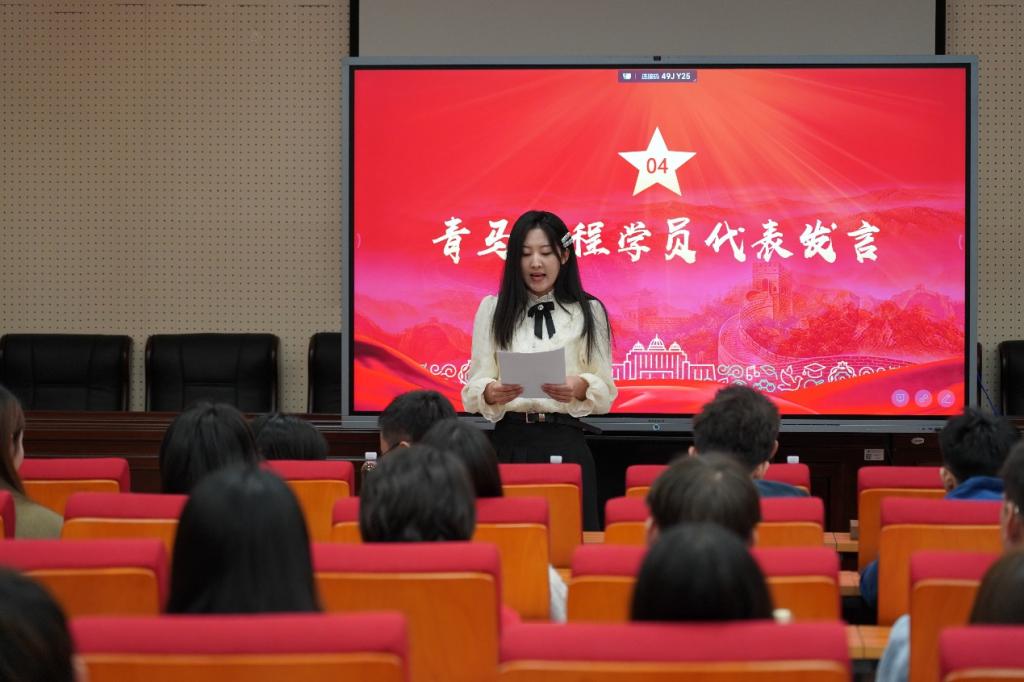 随着朝气蓬勃的团歌旋律响起,活动正式拉开帷幕。徐军老师对青马班的学员们寄予厚望,鼓励他们积极参与社会实践,发挥表率作用,将个人理想融入国家发展大局,实现自我价值与社会价值的双重提升。学员代表郭姝彤同学发表感言,号召同学们严于律己,努力成为马克思主义的坚定信仰者、积极实践者和广泛传播者。任毅老师则以习近平总书记关于新质生产力的内涵、特征和形成机制等内容为主题,为青马班学员带来了精彩的开班第一课。