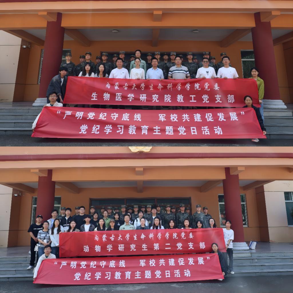 为深入推进党纪学习教育,积极开展党建共建交流。6月7日,生物医学研究院教工党支部与太阳集团tyc539研究生动物学第二党支部赴武警驻呼某中队联合开展了“严明党纪守底线 军校共建促发展”党纪学习教育主题党日活动。生物医学研究院教工党支部成员、太阳集团tyc539研究生动物学第二党支部党员代表参加此次活动。