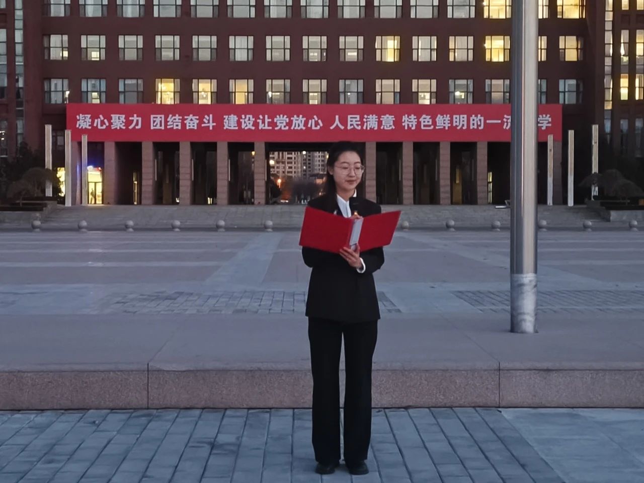 国歌余音仍绕梁,五星红旗在风中猎猎作响。这场升旗仪式,宛如精神洗礼,筑牢信念基石。同学们目光坚毅,脚步沉稳,即将迈向各自征程,他们定把今日仪式所凝的精神,化作逐梦羽翼,带着对祖国炽热之爱,奔赴各自“战场”,笃行不怠,昂扬向上。