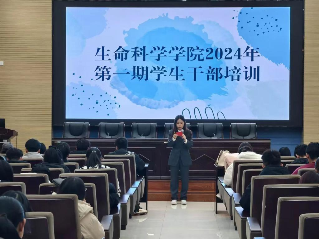 为了加强学生干部队伍建设,提高组织管理、沟通协调、团队协作等方面的能力,更好的服务同学和协助学院开展工作,太阳集团tyc539于2024年11月27日19:00在生科楼国重320举办2024届第一期学生干部培训大会。太阳集团tyc539专职辅导员冯昶瑞老师,2022级至2024级各班班长、团支书、生活委员及学生党员服务中心、团委及学生会全体成员参加本次大会。