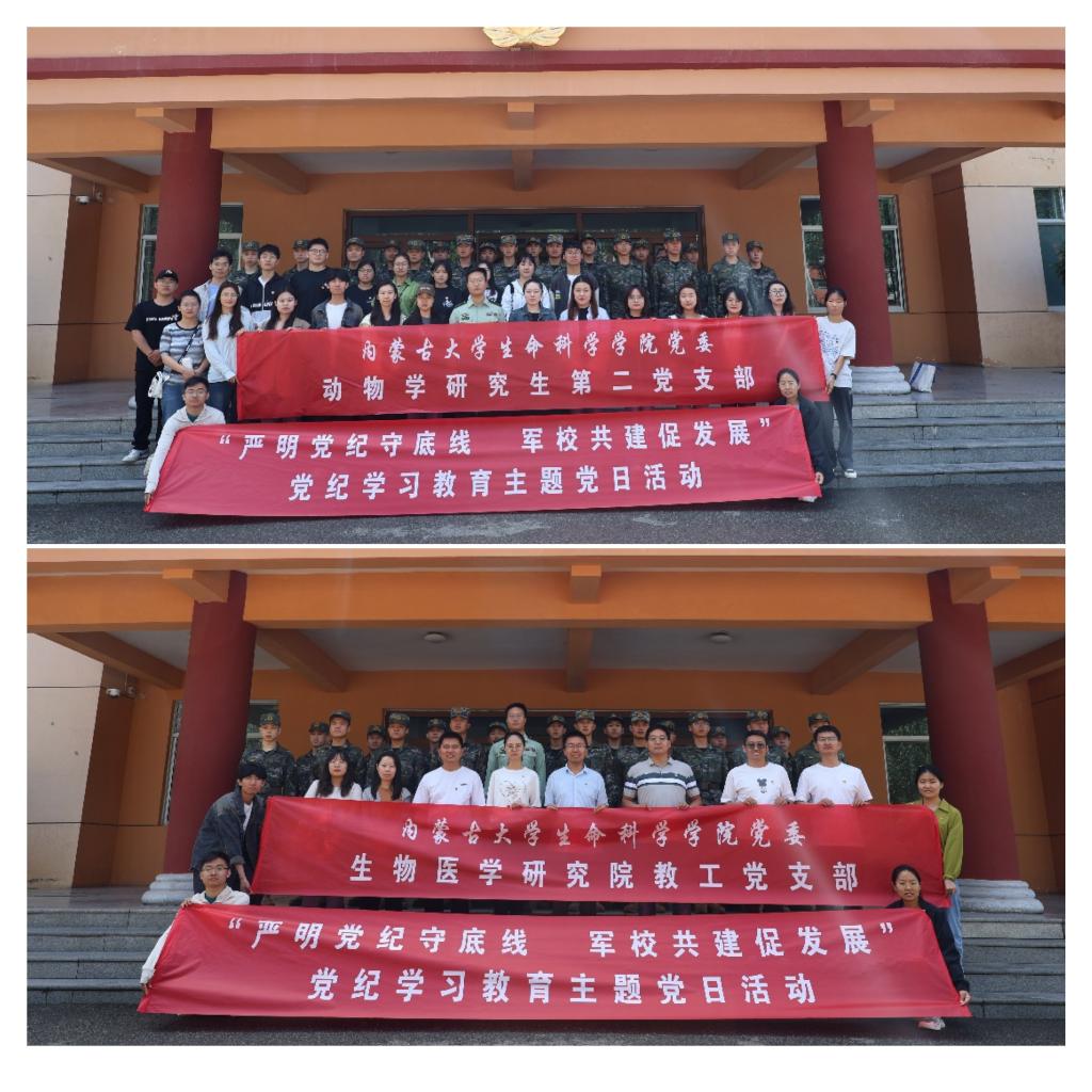 为深入推进党纪学习教育,积极开展党建共建交流。6月7日,生物医学研究院教工党支部与太阳集团tyc539研究生动物学第二党支部赴武警驻呼某中队联合开展了“严明党纪守底线 军校共建促发展”党纪学习教育主题党日活动。生物医学研究院教工党支部成员、太阳集团tyc539研究生动物学第二党支部党员代表参加此次活动。
