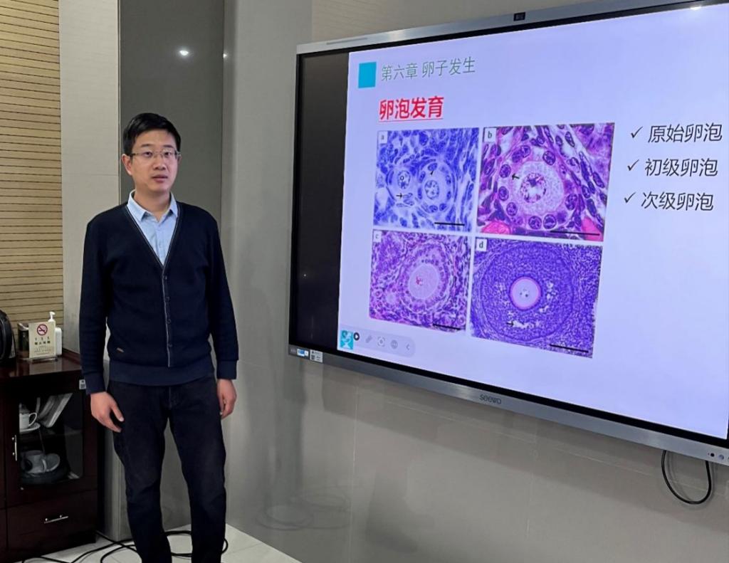 现代农学教研室及动物生物技术教研室在国重118会议室开展了集体教研活动。孙鸿举老师就“园产品储运与保鲜学”的课程教学进行了经验分享。孙老师向大家展示了该门课程多元化的培养目标、丰富的课程资源、重过程的考核方式等,向老师展示了启发式教学等教学方法。张腾老师就“生殖生物学”的课程教学进行了经验分享,张老师以“卵泡发育”章节为实例,生动形象地展示了他高超的授课技巧及案例式教学等教学方法。同时,邀请了学院教学名师苏慧敏老师为大家做教学经验分享。苏老师以“基因工程”课程为例,就课程定位和目标、课程思政、教学内容和课程设计、教学模式、教学方法和手段及课程评价等向大家介绍了她的教学理念,各位教师结合自身负责课程的教学内容及教学方法等方面进行了深入的探讨和交流,受益匪浅。