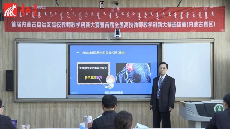 2021年4月16日,首届内蒙古自治区高校教师教学创新大赛暨首届全国高校教师教学创新大赛(内蒙古赛区)选拔赛在内蒙古师范大学圆满落幕。来自全区19所本科院校的64位教师(团队)参加了比赛展示教学风采和教学创新成果。我院遗传学课程群教学团队教师邢万金、苏慧敏代表我校参赛,分别荣获正高组和中级及以下组二等奖的好成绩。邢万金教授进行《遗传学》教学创新成果展示苏慧敏讲师进行《基因工程》教学创新成果展示邢万金教授带...