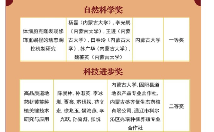 近日,自治区人民政府发布了《关于2022年度自治区科学技术奖励的决定》(内政发〔2023〕16号),我院共有5项成果获奖,取得了新突破。其中我院教师牵头完成的2项成果分别获自然科学一等奖和科技进步二等奖,另有与其他单位合作完成的3项成果获得科技进步奖,包括特等奖1项,二等奖2项。杨磊研究员牵头完成的“体细胞克隆表观修饰重编程的动态调控机制研究”获得自然科学一等奖,占全区自然科学一等奖授奖总数的50%,主要完成人...