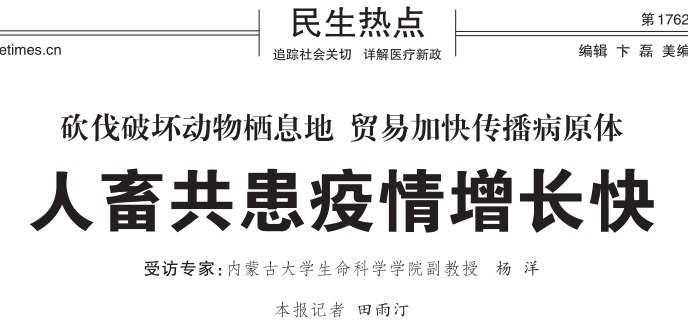 近日,我院杨洋副教授在《生命时报》发表科普文章《人畜共患疫情增长快》,该文章重点介绍了人畜共患病的危害以及成因,呼吁全社会关注人畜共患病防控,加强疫苗接种、维护个人卫生、避免接触野生动物,确保人类公共卫生安全。《生命时报》由人民日报社主管、环球时报社主办,2003年创刊,我国第一份健康类周刊。杨洋,太阳集团tyc539副教授,硕士研究生导师,从事狂犬病、口蹄疫、日本乙型脑炎等人畜共患病疫苗研制工...